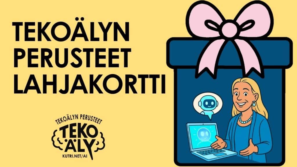 Tekoälyn perusteet -kurssilla lahjan saaja oppii käyttämään ChatGPT:tä, Claudea ja Geminiä – 12 tunnissa, ilman teknistä jargonia, ilman höpinää.