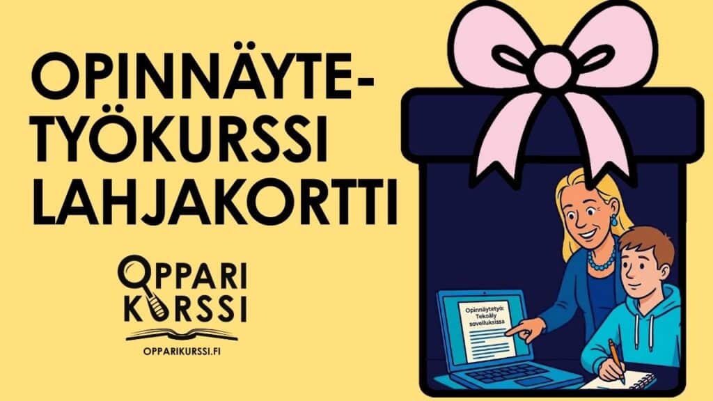 Opinnäytetyökurssin lahjakortti on konkreettinen ja lempeä tapa tukea läheistä, jonka opinnäytetyö, gradu tai diplomityö on jäänyt kesken.